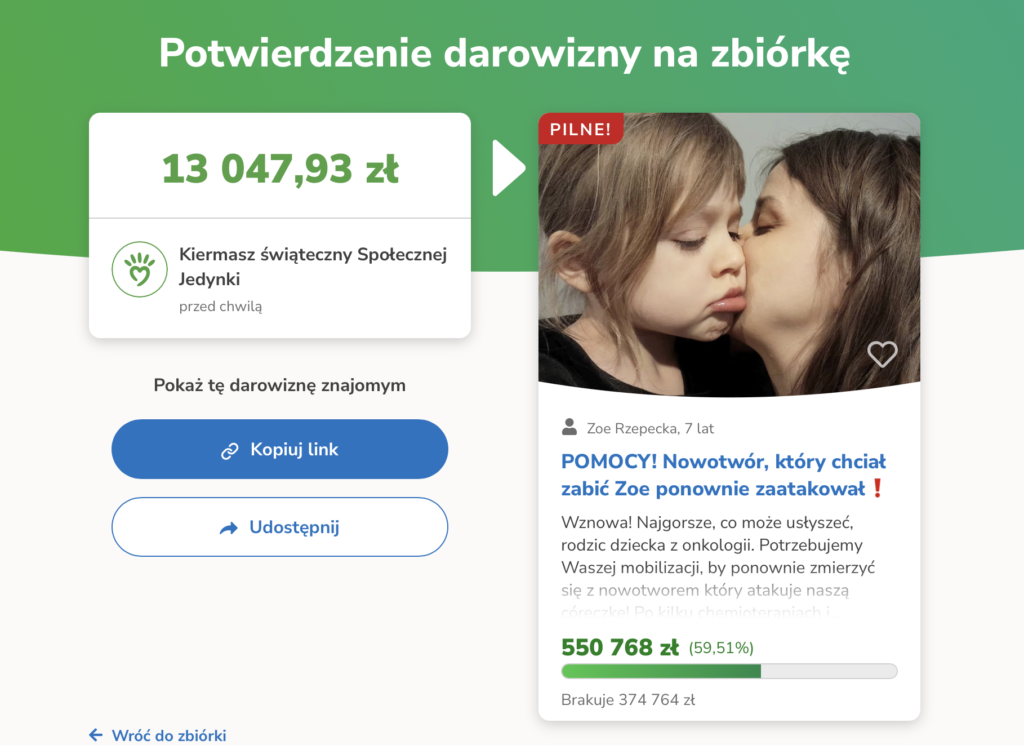 Podczas kiermaszu świątecznego dzięki Waszym otwartym sercom zebraliśmy dla Zoe 13 047,93 zł!