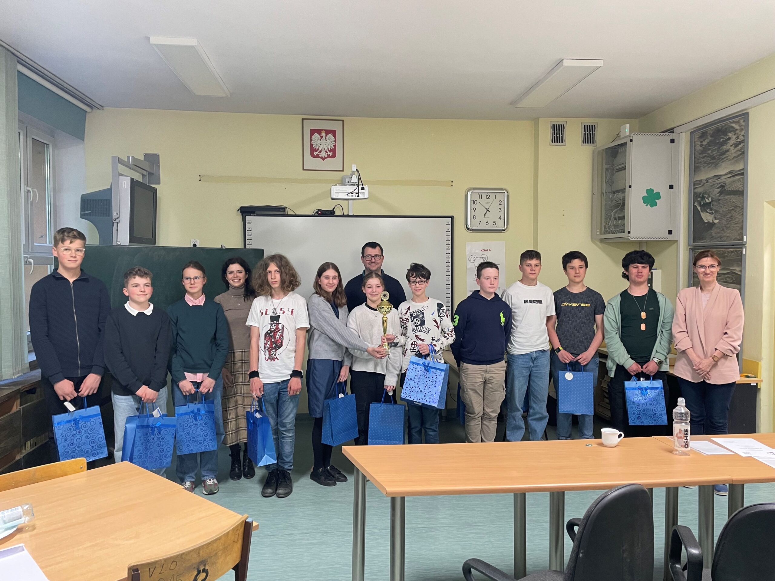 Drużyna Zieloni, w składzie Stefania Berge (7a), Dominik Dworczak (7a), Wiktor Koziński (7a) oraz Hubert Janiak (7b) rozegrała finał w formie meczu matematycznego, który odbył się 19.04 w V LO w Poznaniu.