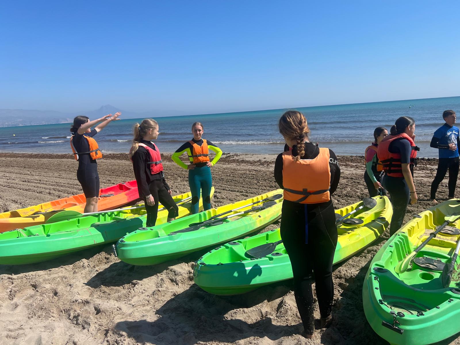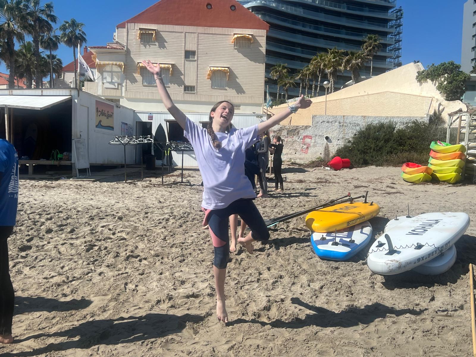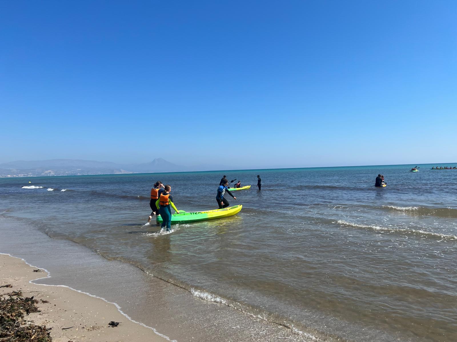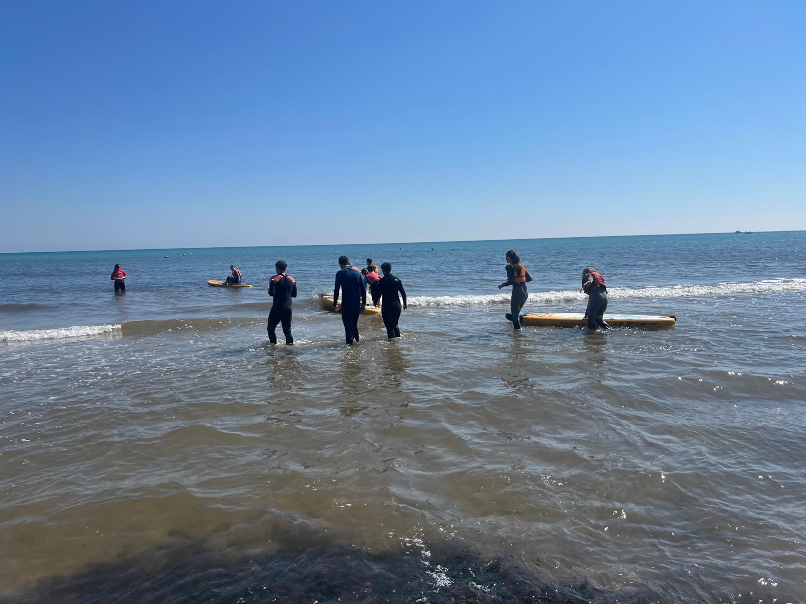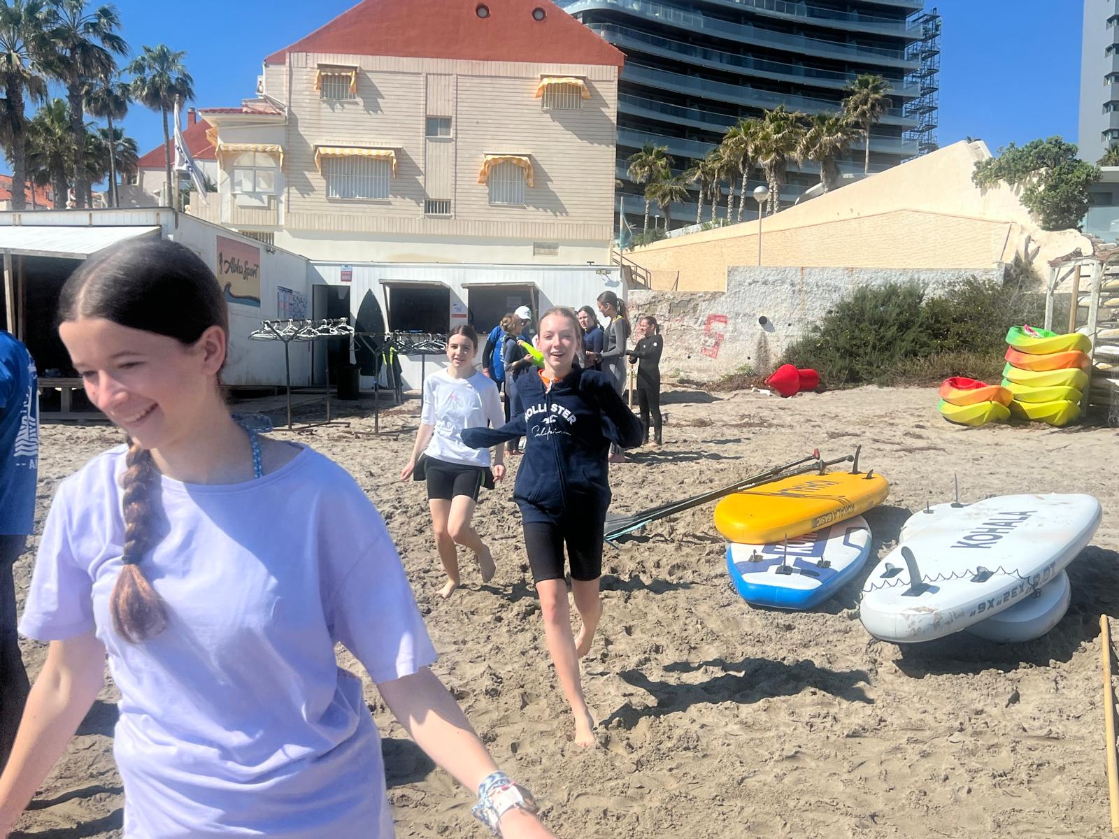 Dzisiaj powitała nas piękna i urokliwa pogoda, więc to był cudowny czas na zrealizowanie naszego planu z pójściem na plażę. Po długim spacerze przez urokliwe drogi Alicante doszliśmy do najbardziej urokliwej plaży w mieście, gdzie mogliśmy odpocząć i wziąć udział w sportowych aktywnościach wodnych np. pływanie na supie oraz pływanie kajakami. Na supach pływaliśmy w parach, graliśmy w gry oraz bawiliśmy się przy tym świetnie, zaś pływając kajakami również w dwójkach oraz odbijając piłkę lub ścigając się, spędzaliśmy czas równie dobrze. Następnie mieliśmy czas na odpoczynek oraz na opalanie się na pięknym słońcu, co sprawiło nam dużo frajdy integrując się z rówieśnikami. Następnie po tym wspaniałym wypoczynku, niektórzy poszli jeść obiad, a inni wrócili do domów z Hiszpanami i mnóstwem wspomnień. Dzisiejszego dnia na pewno tak szybko nie zapomnimy.