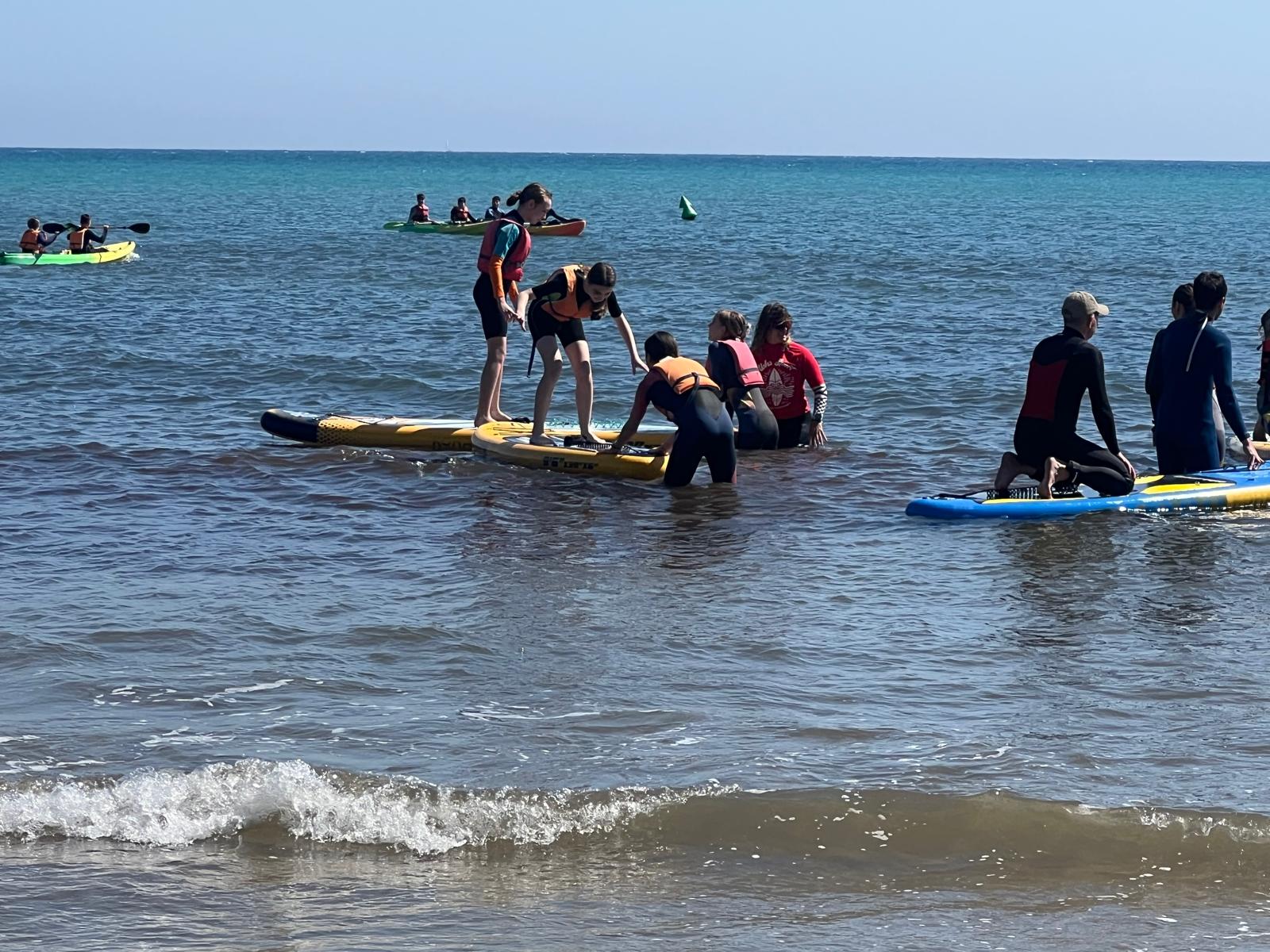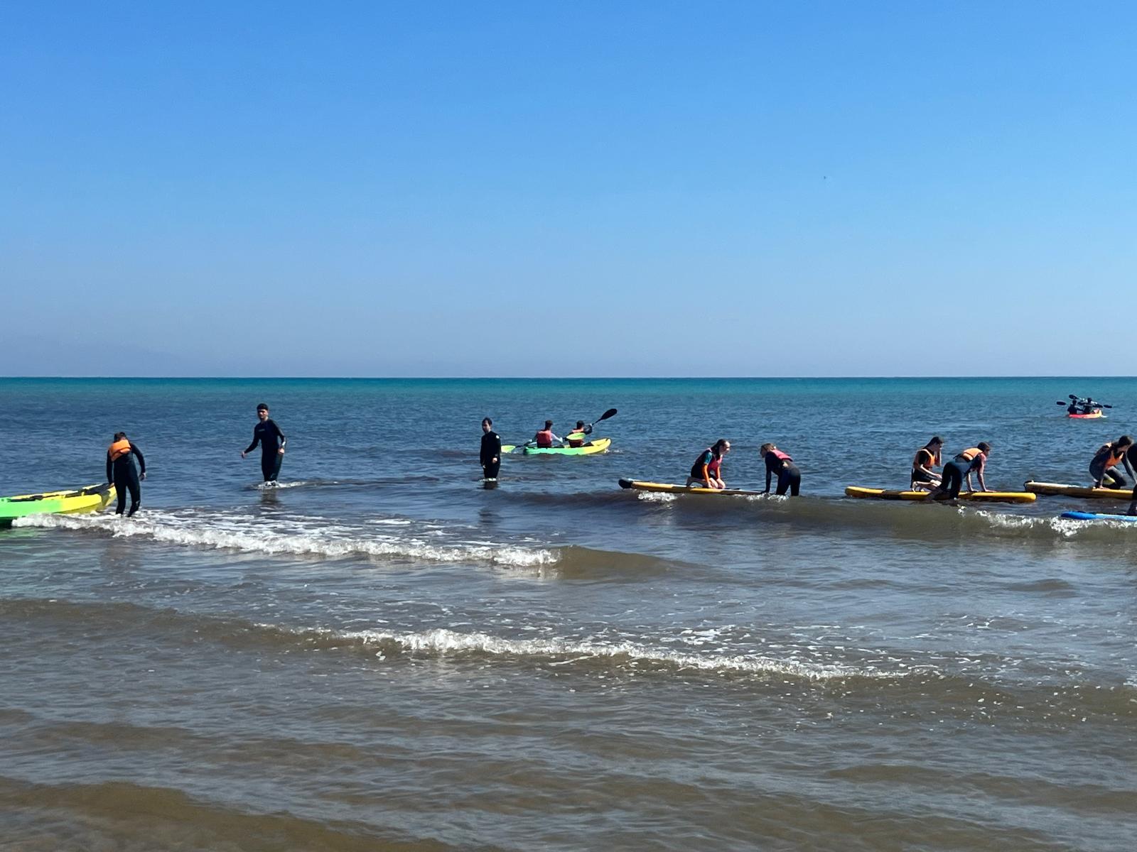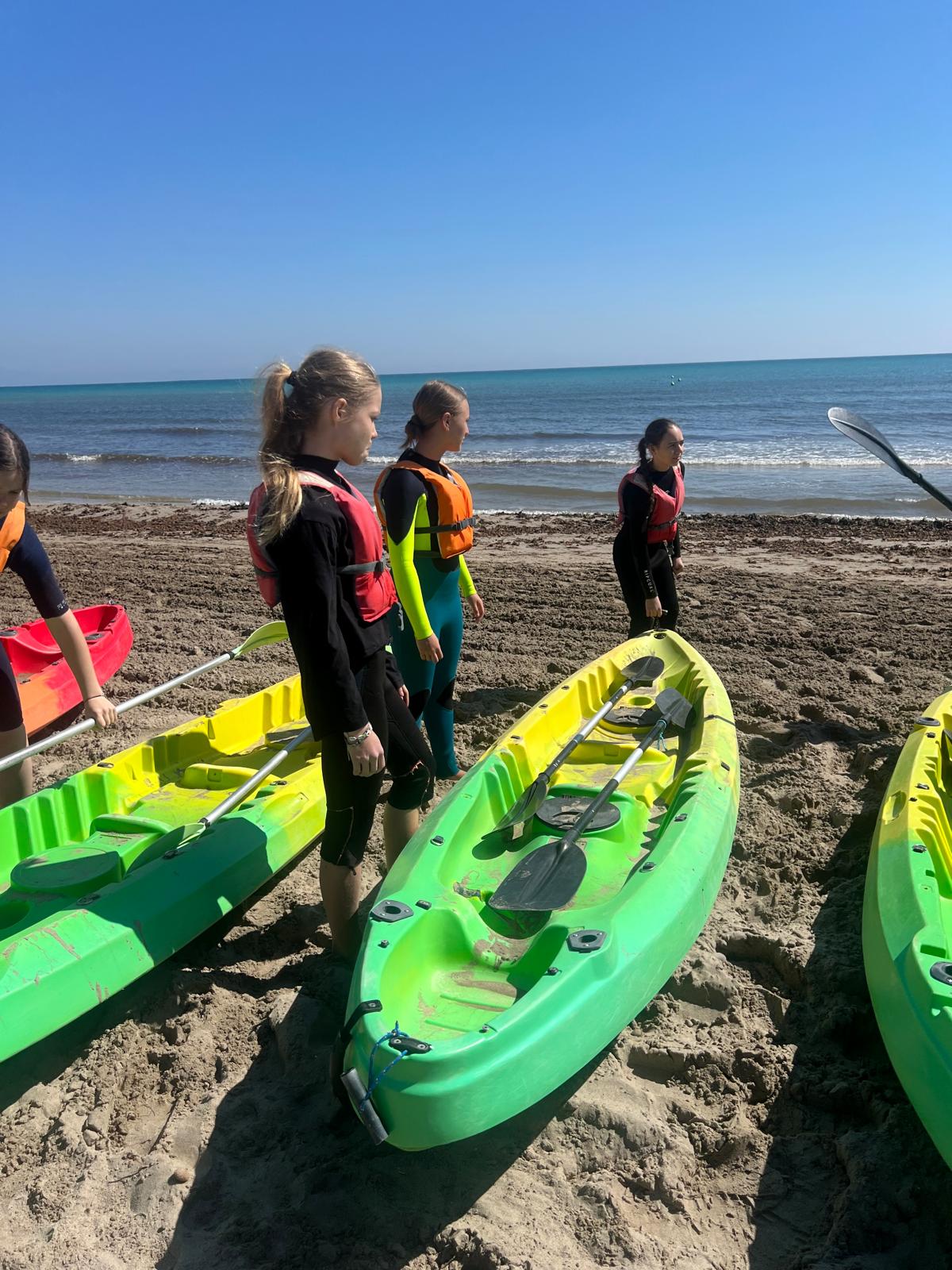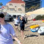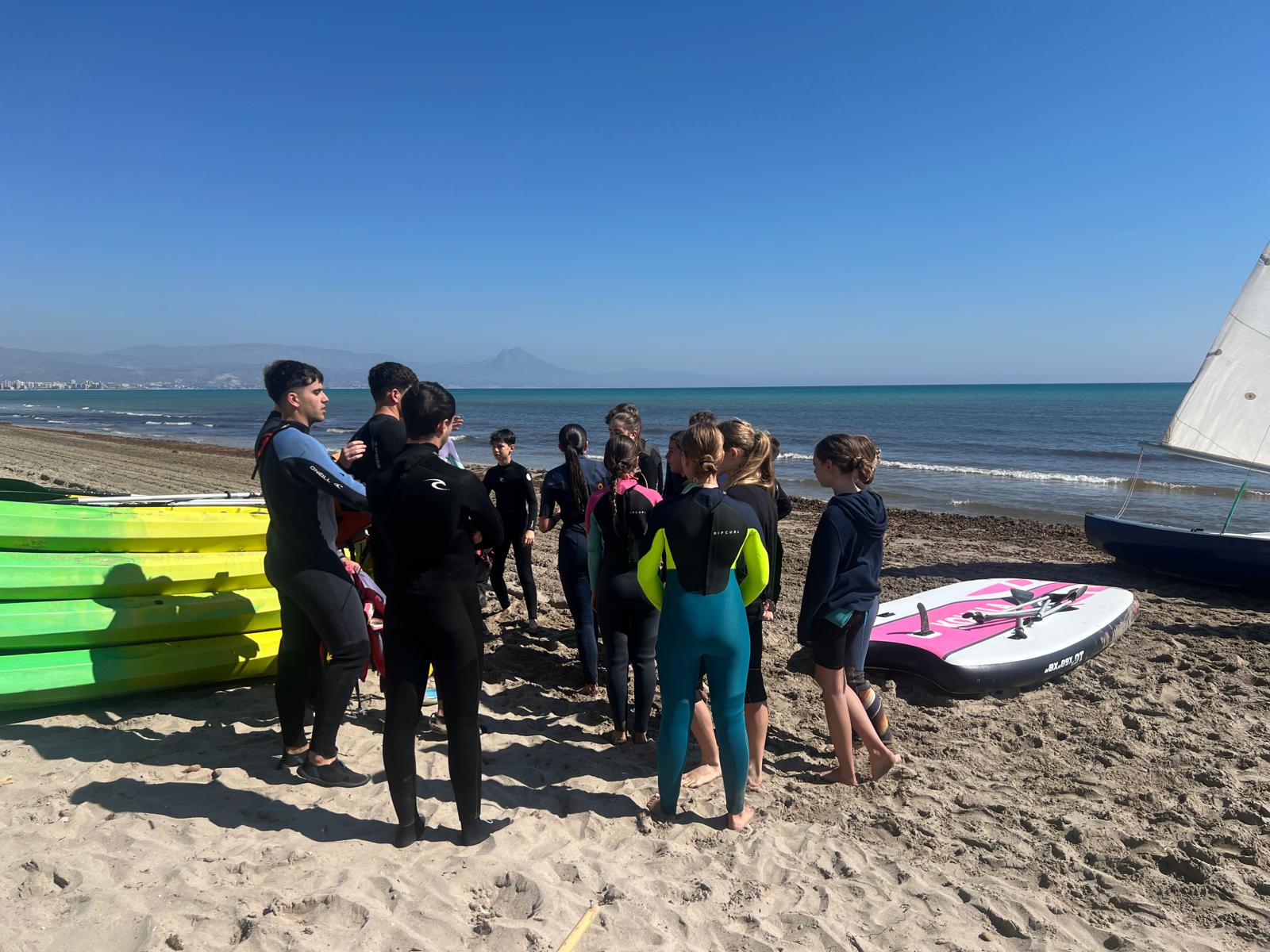 Dzisiaj powitała nas piękna i urokliwa pogoda, więc to był cudowny czas na zrealizowanie naszego planu z pójściem na plażę. Po długim spacerze przez urokliwe drogi Alicante doszliśmy do najbardziej urokliwej plaży w mieście, gdzie mogliśmy odpocząć i wziąć udział w sportowych aktywnościach wodnych np. pływanie na supie oraz pływanie kajakami. Na supach pływaliśmy w parach, graliśmy w gry oraz bawiliśmy się przy tym świetnie, zaś pływając kajakami również w dwójkach oraz odbijając piłkę lub ścigając się, spędzaliśmy czas równie dobrze. Następnie mieliśmy czas na odpoczynek oraz na opalanie się na pięknym słońcu, co sprawiło nam dużo frajdy integrując się z rówieśnikami. Następnie po tym wspaniałym wypoczynku, niektórzy poszli jeść obiad, a inni wrócili do domów z Hiszpanami i mnóstwem wspomnień. Dzisiejszego dnia na pewno tak szybko nie zapomnimy.