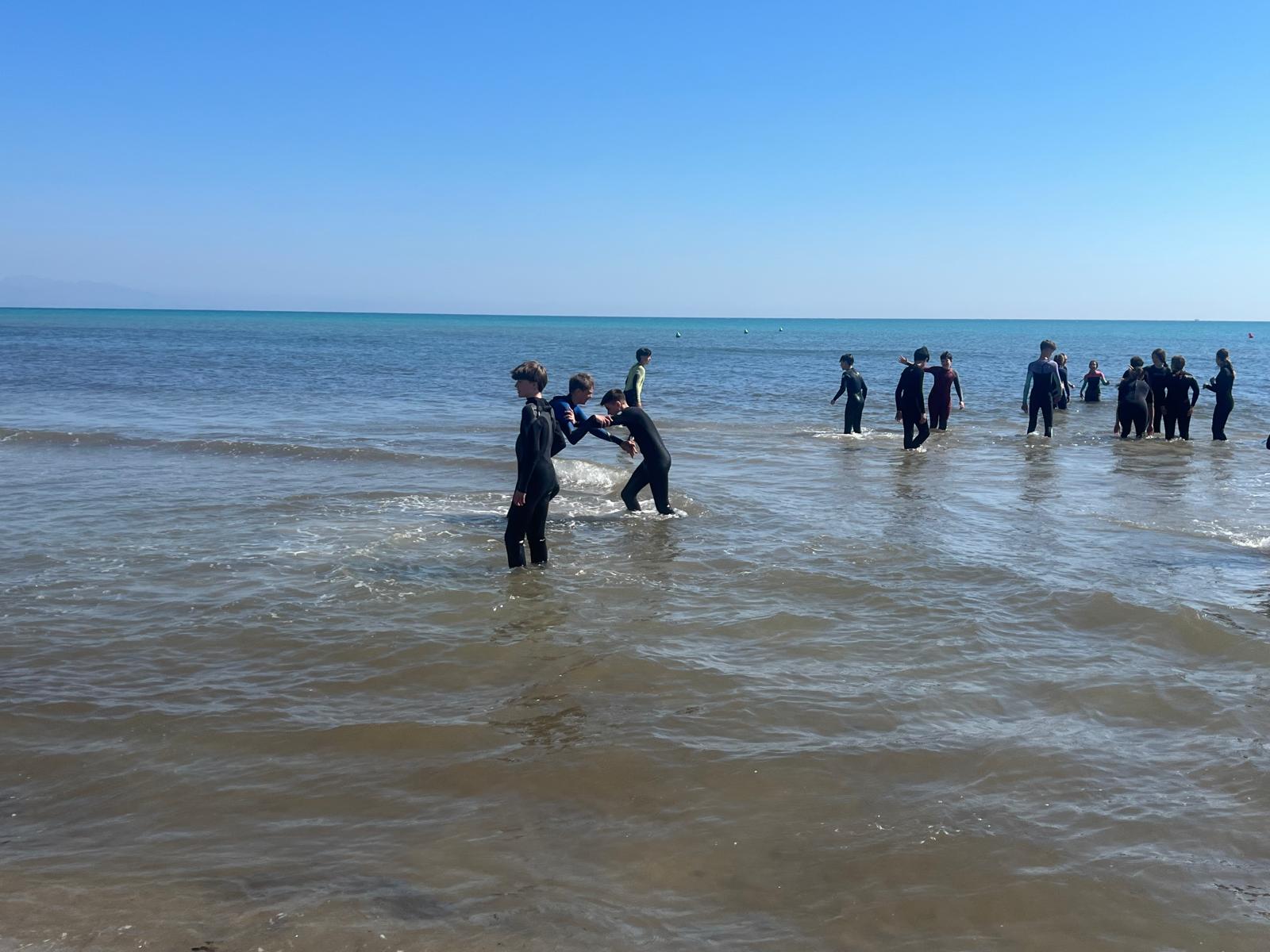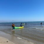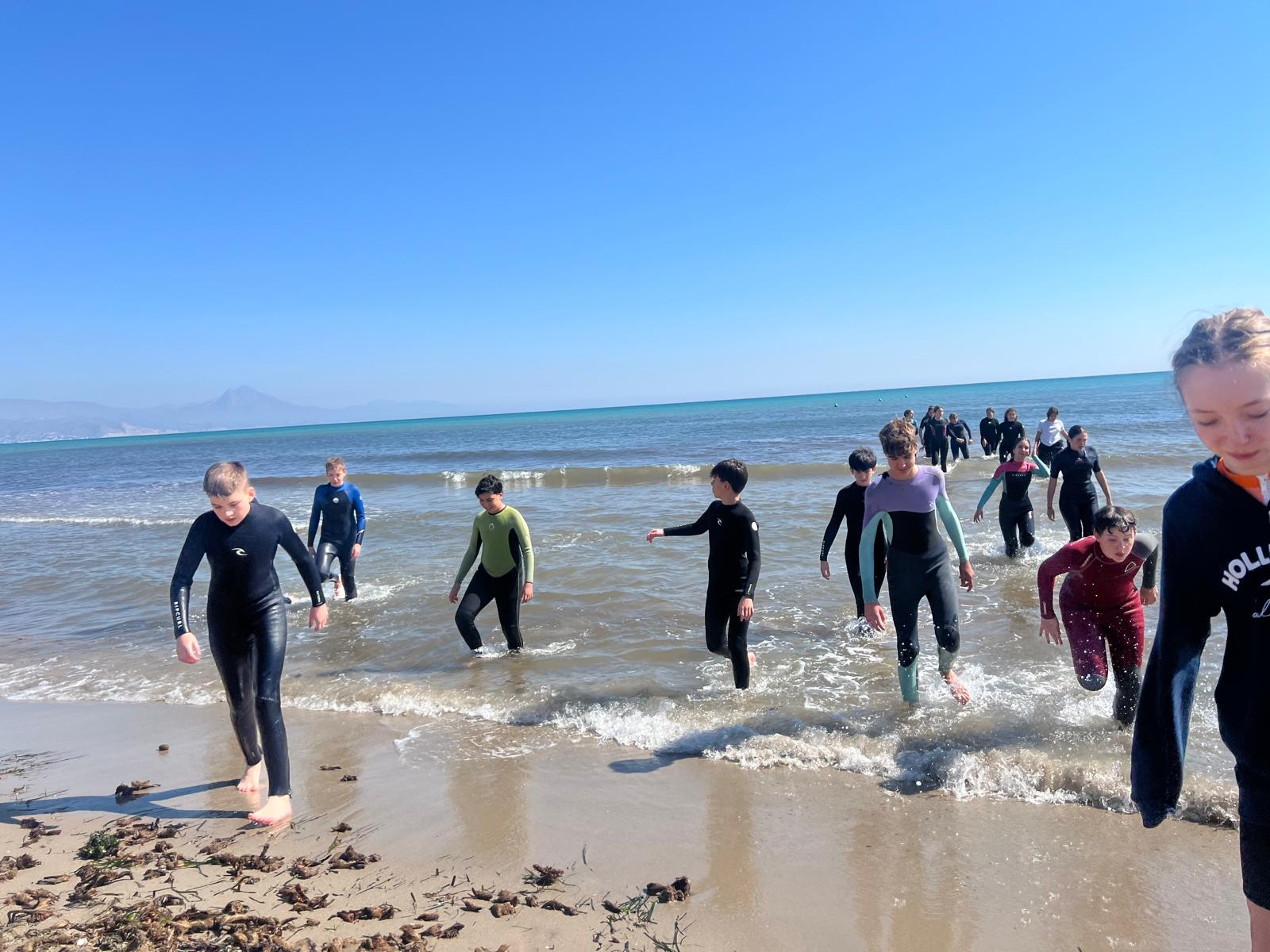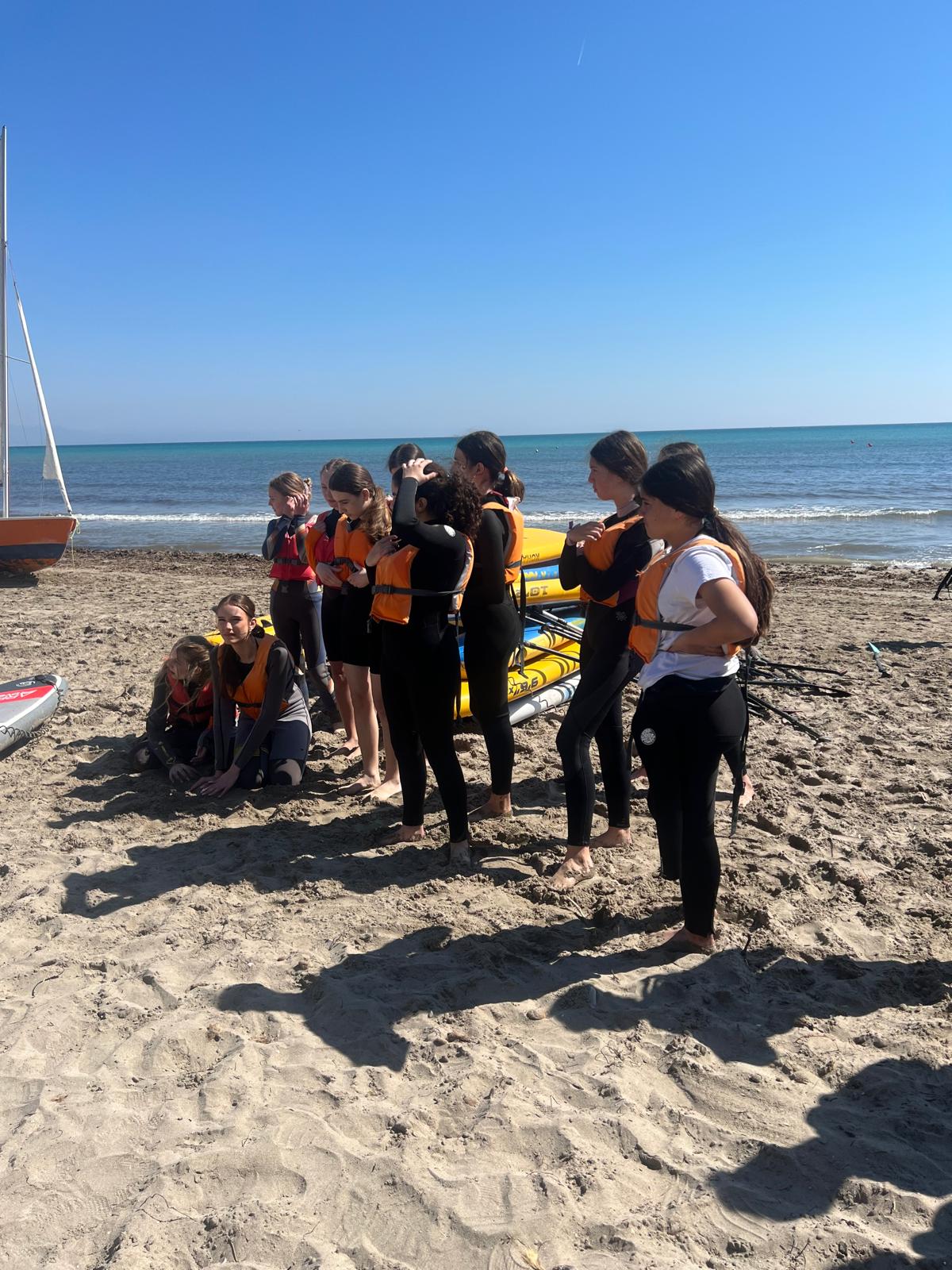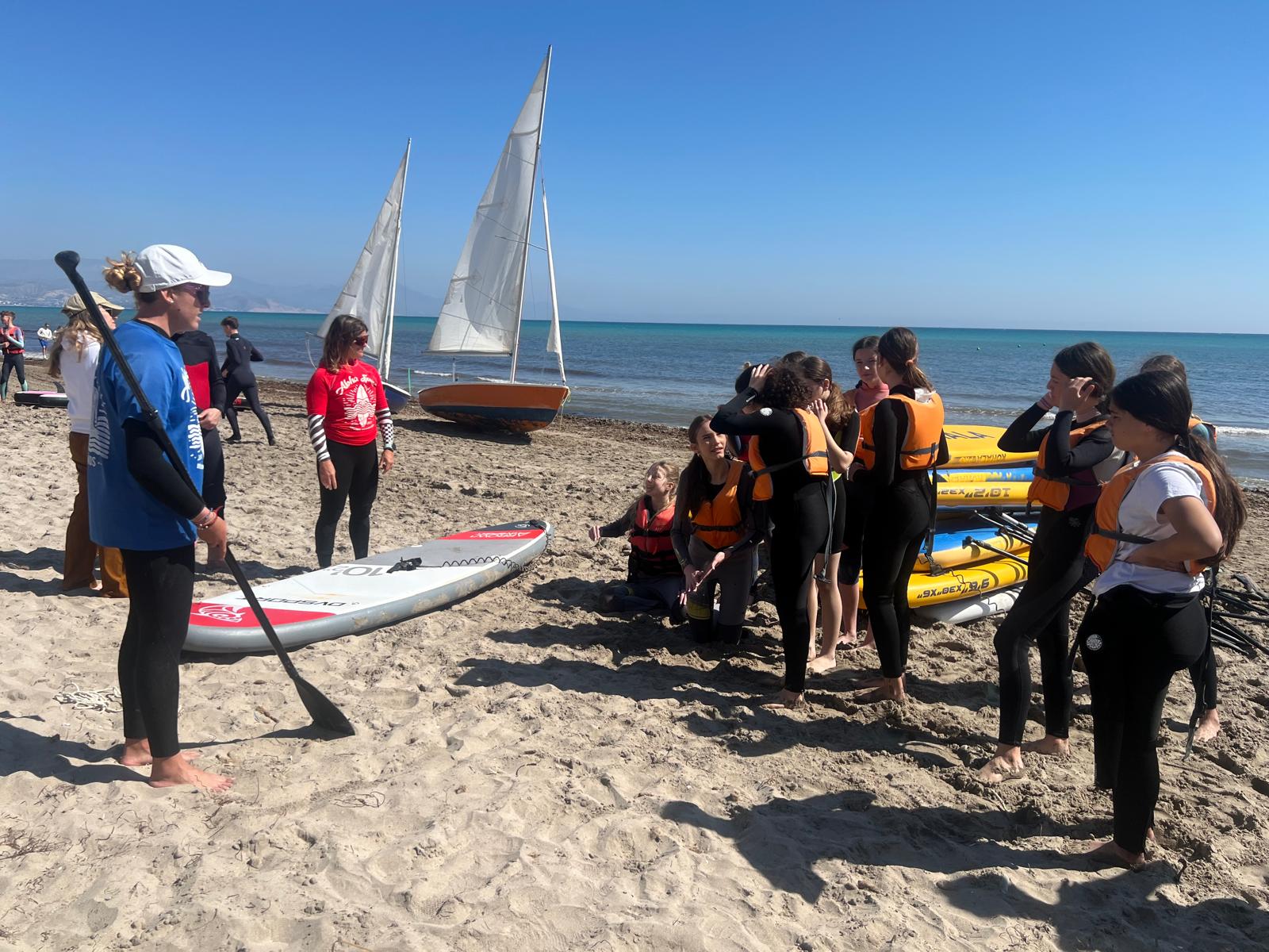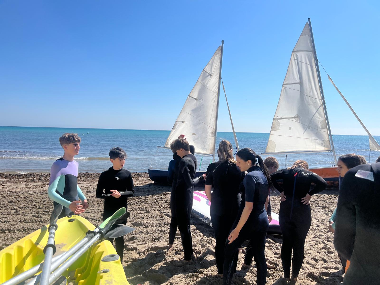 Dzisiaj powitała nas piękna i urokliwa pogoda, więc to był cudowny czas na zrealizowanie naszego planu z pójściem na plażę. Po długim spacerze przez urokliwe drogi Alicante doszliśmy do najbardziej urokliwej plaży w mieście, gdzie mogliśmy odpocząć i wziąć udział w sportowych aktywnościach wodnych np. pływanie na supie oraz pływanie kajakami. Na supach pływaliśmy w parach, graliśmy w gry oraz bawiliśmy się przy tym świetnie, zaś pływając kajakami również w dwójkach oraz odbijając piłkę lub ścigając się, spędzaliśmy czas równie dobrze. Następnie mieliśmy czas na odpoczynek oraz na opalanie się na pięknym słońcu, co sprawiło nam dużo frajdy integrując się z rówieśnikami. Następnie po tym wspaniałym wypoczynku, niektórzy poszli jeść obiad, a inni wrócili do domów z Hiszpanami i mnóstwem wspomnień. Dzisiejszego dnia na pewno tak szybko nie zapomnimy.