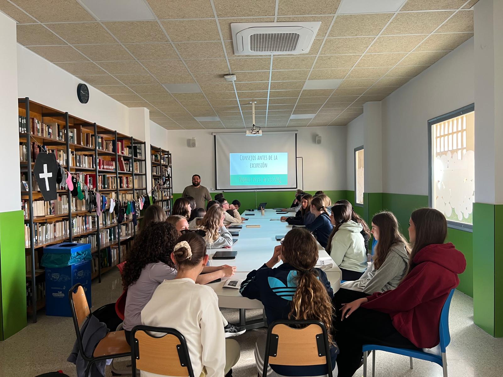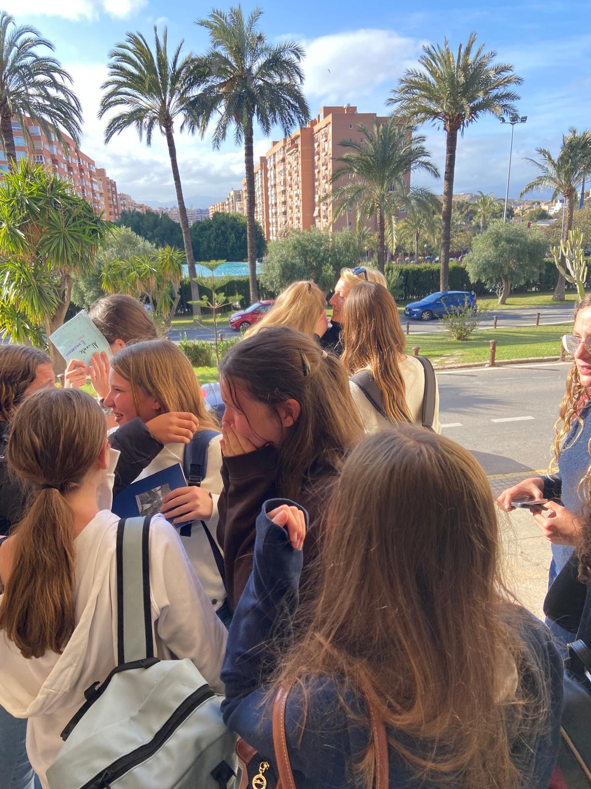 Pierwszy dzień naszej wymiany w Alicante był pełen wrażeń i nowych doświadczeń. Już od samego rana udaliśmy się do hiszpańskiej szkoły, gdzie zostaliśmy bardzo serdecznie przyjęci. Nasi hiszpańscy partnerzy oprowadzili nas po budynku, pokazując sale lekcyjne oraz najważniejsze miejsca w szkole, dzięki czemu mogliśmy lepiej poznać, jak wygląda nauka w Hiszpanii.