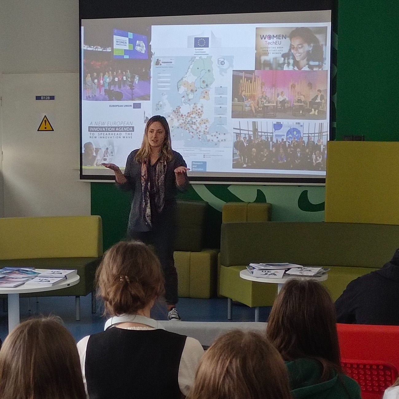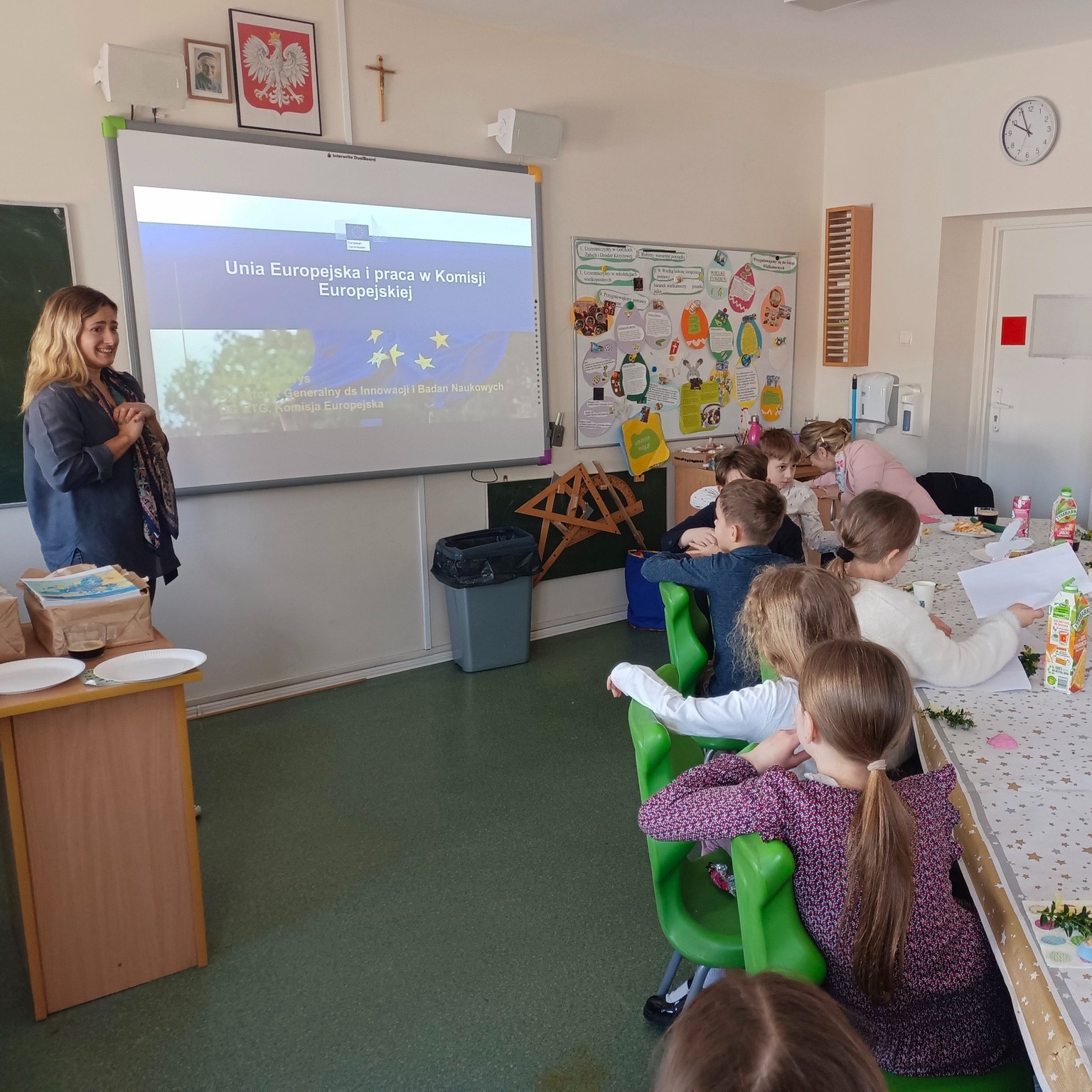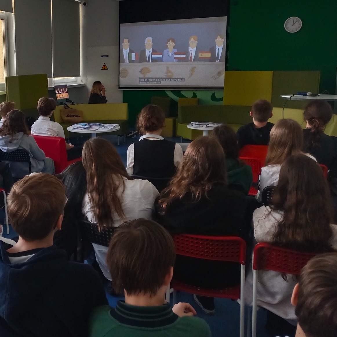 W ramach inicjatywy „Back to school” Magdalena dzieliła się swoimi doświadczeniami pracy w KE, wyjaśniała zawiłości unijnych struktur, opowiadała o swojej ścieżce zawodowej i wyczerpująco odpowiadała na pytania.